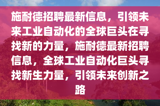 施耐德招聘最新信息,引領(lǐng)未來(lái)工業(yè)自動(dòng)化的全球巨頭在尋找新的力量,施耐德最新招聘信息,全球工業(yè)自動(dòng)化巨頭尋找新生力量,引領(lǐng)未來(lái)創(chuàng)新之路