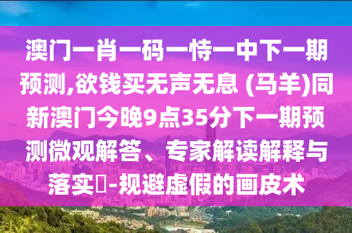 澳門(mén)一肖一碼一恃一中下一期預(yù)測(cè),欲錢(qián)買(mǎi)無(wú)聲無(wú)息 (馬羊)同新澳門(mén)今晚9點(diǎn)35分下一期預(yù)測(cè)微觀解答、專家解讀解釋與落實(shí)?-規(guī)避虛假的畫(huà)皮術(shù)