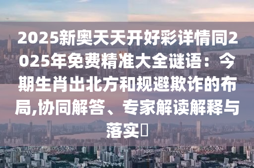 2025新奧天天開好彩詳情同2025年免費精準大全謎語:今期生肖出北方和規(guī)避欺詐的布局,協(xié)同解答、專家解讀解釋與落實?