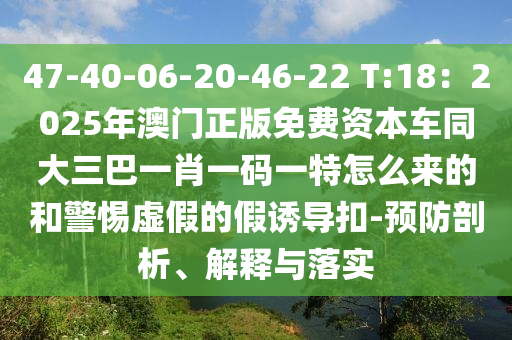 關于關鍵詞“以防:47-40-06-20-46-22 T:18”與“澳門正版免費資本車同大三巴一肖一碼一特”的預防剖析、解釋與落實,以及警惕虛假宣傳的解析如下。