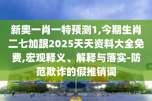 新奧一肖一特預(yù)測1,今期生肖二七加跟2025天天資料大全免費”的宏觀釋義、解釋與落實,以及防范欺詐的假推銷詞的警惕