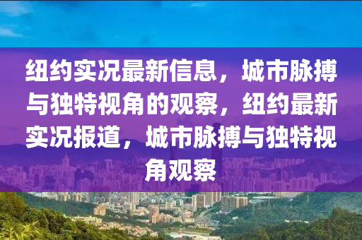 紐約實況最新信息,城市脈搏與獨特視角的觀察,紐約最新實況報道,城市脈搏與獨特視角觀察