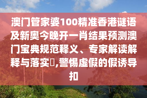 澳門管家婆100精準(zhǔn)香港謎語及新奧今晚開一肖結(jié)果預(yù)測澳門寶典規(guī)范釋義、專家解讀解釋與落實(shí)?,警惕虛假的假誘導(dǎo)扣