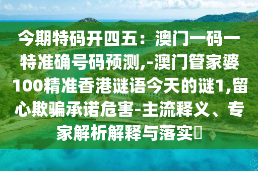 今期特碼開(kāi)四五:澳門(mén)一碼一特準(zhǔn)確號(hào)碼預(yù)測(cè),-澳門(mén)管家婆100精準(zhǔn)香港謎語(yǔ)今天的謎1,留心欺騙承諾危害-主流釋義、專(zhuān)家解析解釋與落實(shí)?