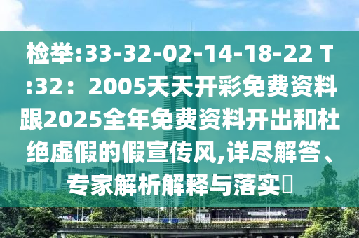 檢舉:33-32-02-14-18-22 T:32:2005天天開彩免費資料跟2025全年免費資料開出和杜絕虛假的假宣傳風,詳盡解答、專家解析解釋與落實?